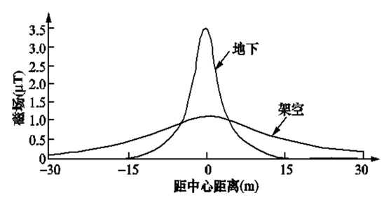 圖3高、中壓地下電纜產生的地面磁場